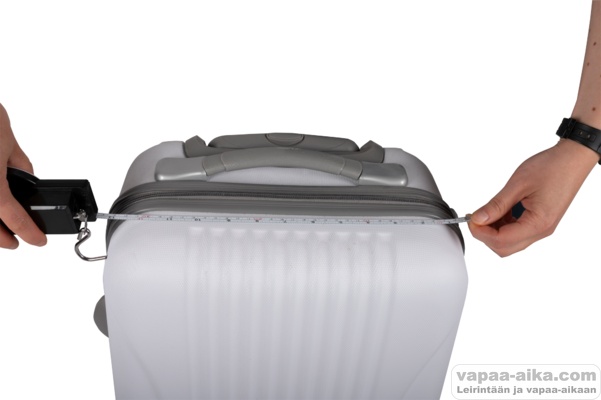 Dunlopin matkatavaravaaka voi kantaa enintään 32 kg ja siinä on integroitu mittanauha.