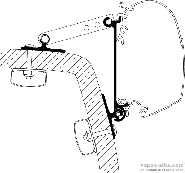 Seinämarkiisin adapteri, joka sopii haastavan muotoisiin seiniin.